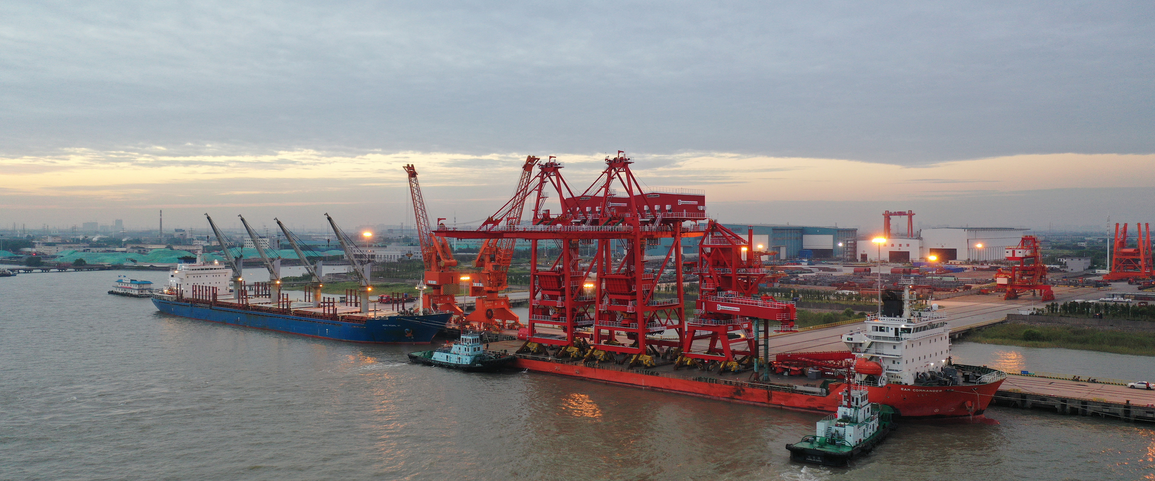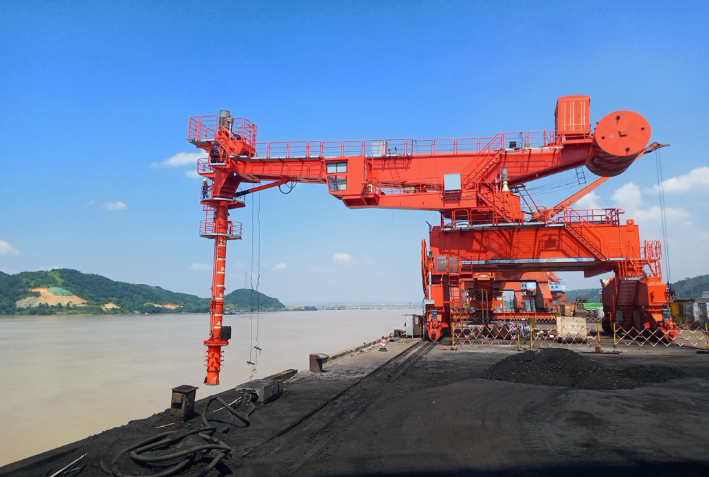 湘江之畔,華新機(jī)電大唐華銀株洲項(xiàng)目抓斗橋式卸船機(jī)近日完成首船接卸。